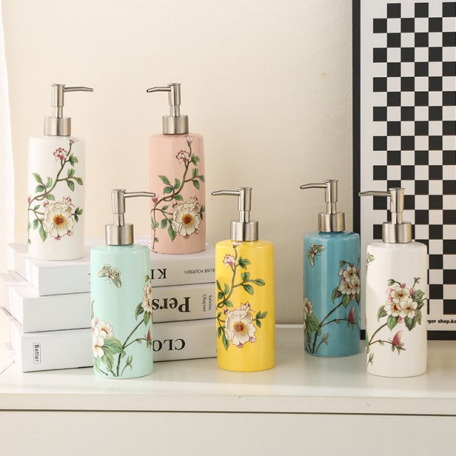 Crafted from high-quality ceramic, this dispenser is made to last. The durable pump top delivers smooth, controlled dispensing, while the weight of the ceramic base keeps it stable on any surface. Its compact size fits easily on countertops or shelves without taking up too much space—typically standing around 6–7 inches tall. The floral pattern adds a refined decorative accent, making it ideal for those who enjoy mixing functional and ornamental pieces in their home.