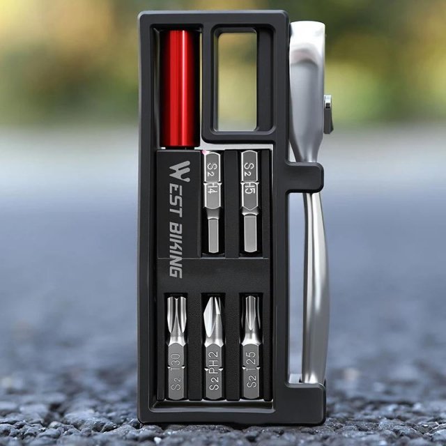 With bidirectional adjustment, high wear resistance, and a comfortable nylon-handled design, this compact set supports everything from quick seat tweaks to precision component adjustments. The assorted bit collection includes H2.5, H3, H4, H5, H6, H8, T25, T30, PH2, and SL4—giving you the flexibility to tackle many common bike repair needs with ease.