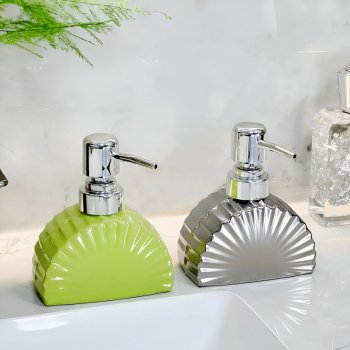 Elegant Fan-Shaped Ceramic Pump Bottle for Lotion, Soap & Shower Essentials